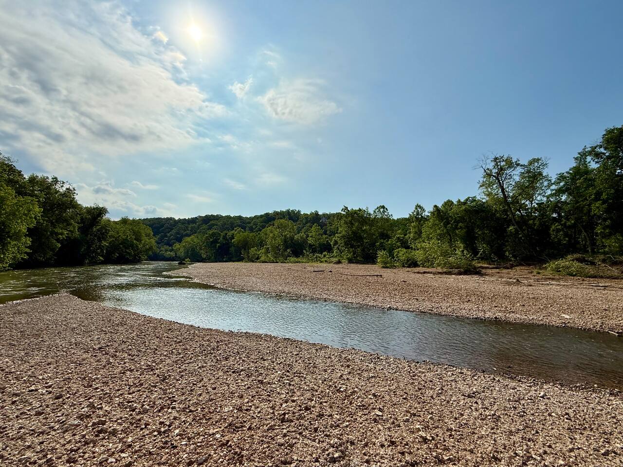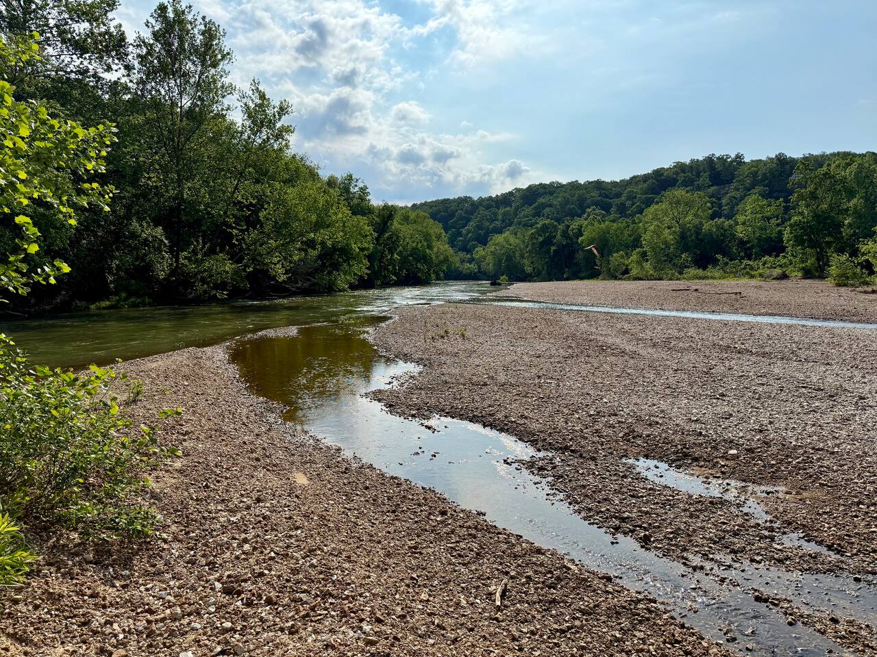 Tucked into 180 acres of Ozark countryside along the Meramec River, Caribou Cabin is your luxury, private escape from the everyday. This brand new 3 bedroom, 2 bathroom cabin sleeps up to 8 and puts you steps away from your own private gravel bar on one of the best stretches of the Meramec River in the area. Enjoy wooded trails, bubbling springs, fire pits and complete solitude.