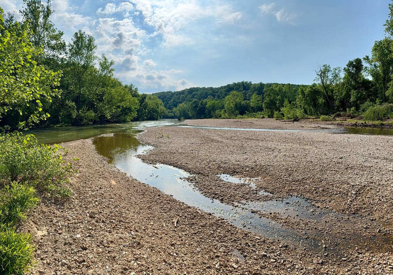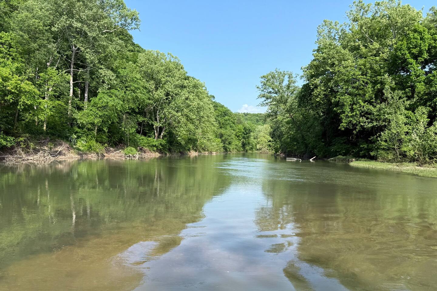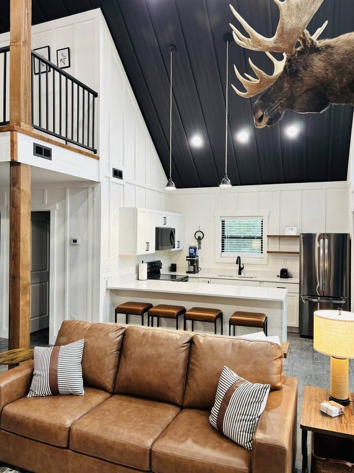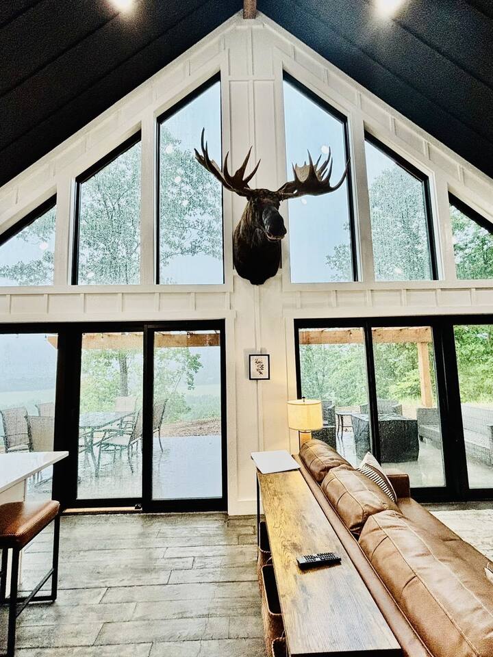Tucked into 180 acres of Ozark countryside along the Meramec River, Caribou Cabin is your luxury, private escape from the everyday. This brand new 3 bedroom, 2 bathroom cabin sleeps up to 8 and puts you steps away from your own private gravel bar on one of the best stretches of the Meramec River in the area. Enjoy wooded trails, bubbling springs, fire pits and complete solitude.